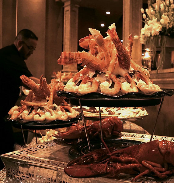 Prawns, oysters, sesame crusted ahi tuna, tobiko, wasabi, soy glaze, cocktail sauce, jalapeño-cilantro aioli